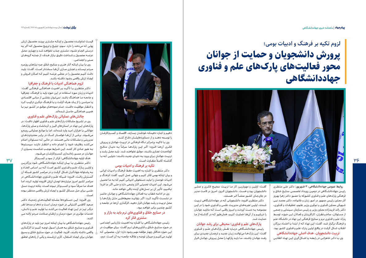 ✔️ پرورش دانشجویان و حمایت از جوانان محور فعالیت‌های پارک‌های علم و فناوری جهاددانشگاهی