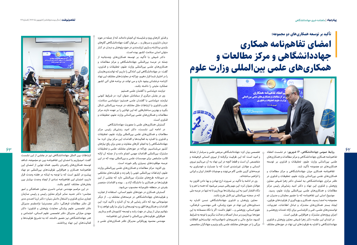 ✔️ امضای تفاهم نامه ‌نامه همکاری جهاددانشگاهی و مرکز مطالعات و همکاری‌های علمی بین‌المللی وزارت علوم