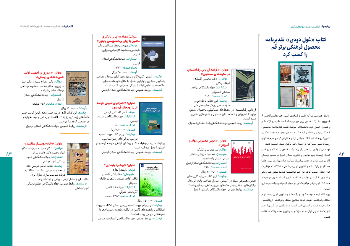 شماره 212 ماهنامه «پیام جهاد» ویژه شهریور 1404، با نگاهی بر جدیدترین دستاوردهای جهادگران در سطح کشور منتشر شد.