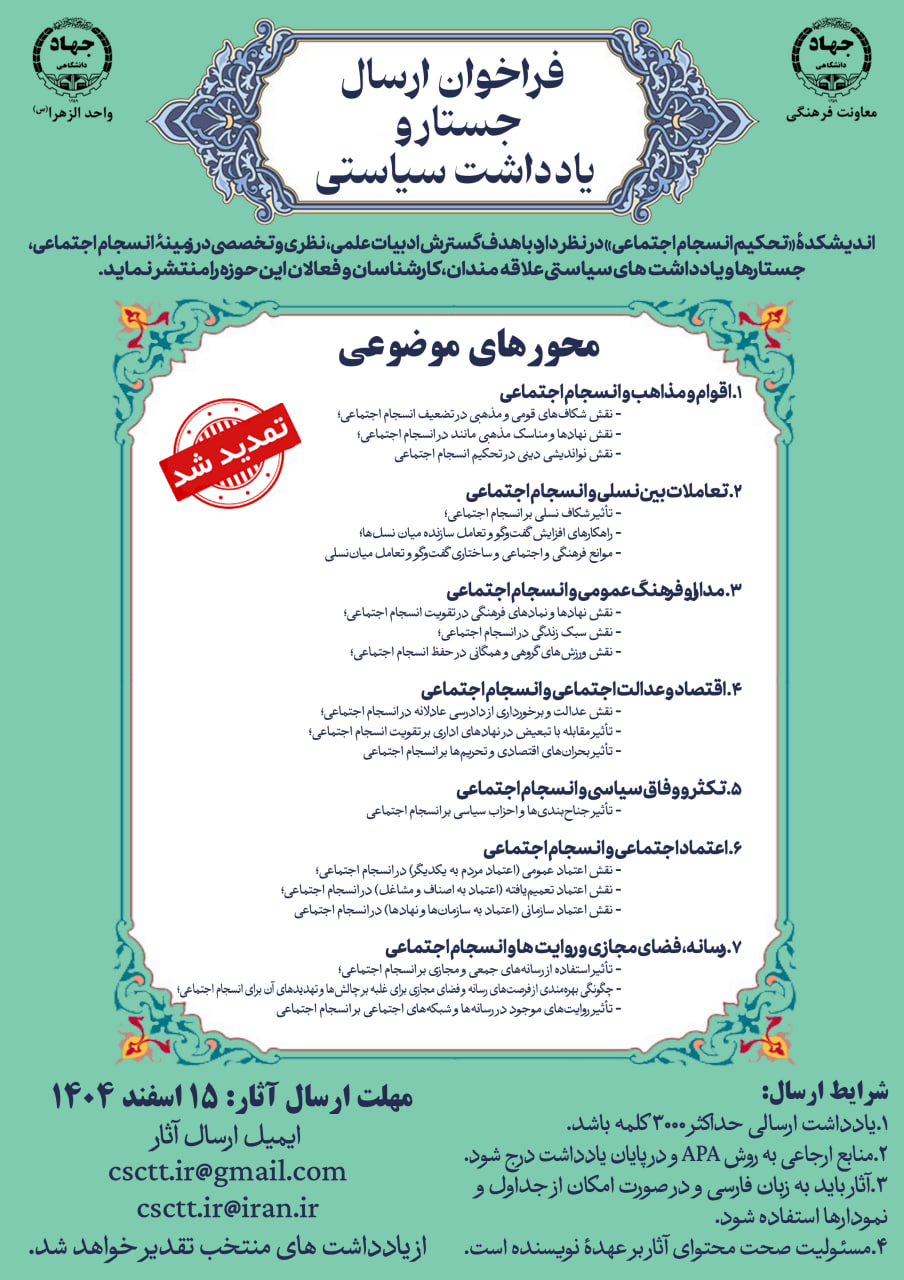 تمدید فراخوان ارسال جستار و یادداشت سیاستی